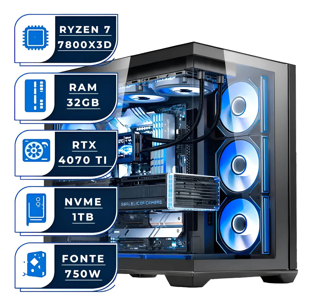 PC Gamer Ryzen 7 RTX 4070 32GB SSD 1TB original GFTECH com garantia de 12 meses e envio rápido para todo Brasil.